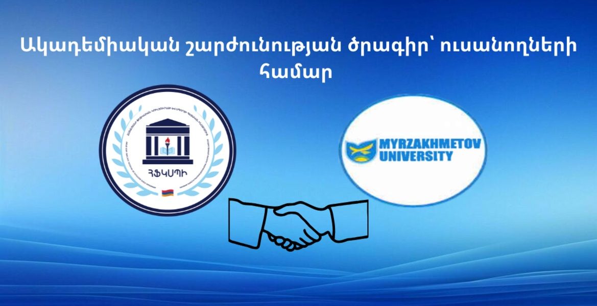 Սիրելի՛ ուսանողներ, հրավիրում ենք մասնակցելու Ղազախստանի Աբայ Միրզախմետովի անվան Կոկշետաուի համալսարանի հետ համագործակցությամբ կազմակերպվող ուսանողների ակադեմիական շարժունության դրամաշնորհային ծրագրին՝ բակալավրիատի հետևյալ կրթական ծրագրերում՝