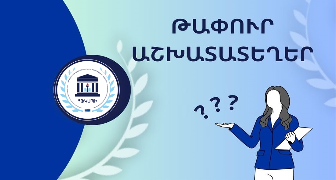 Հայտարարվում է մրցույթ ՀՖԿՍՊԻ–ի Միջին մասնագիտական և արհեստագործական կրթական ծրագրերի կենտրոնում (քոլեջ) «Իրավունքի հիմունքներ» և «Աշխատանքային գործունեության ընդհանուր հմտություններ» մոդուլները դասավանդող մասնագետների թափուր հաստիքները համալրելու նպատակով։